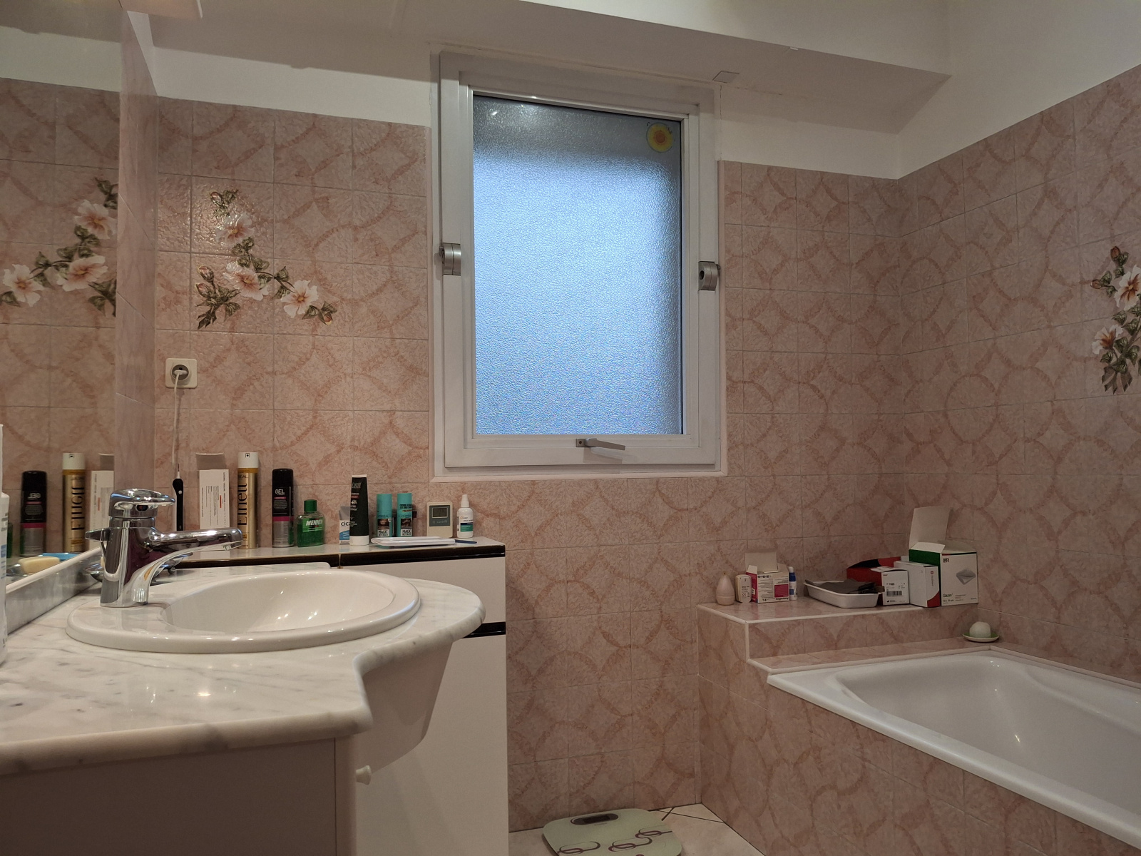 - Salle de bain au 3/4 faïencée avec baignoire, meuble 1 vasque, bidet & sèche-serviettes de presque 9 m2.