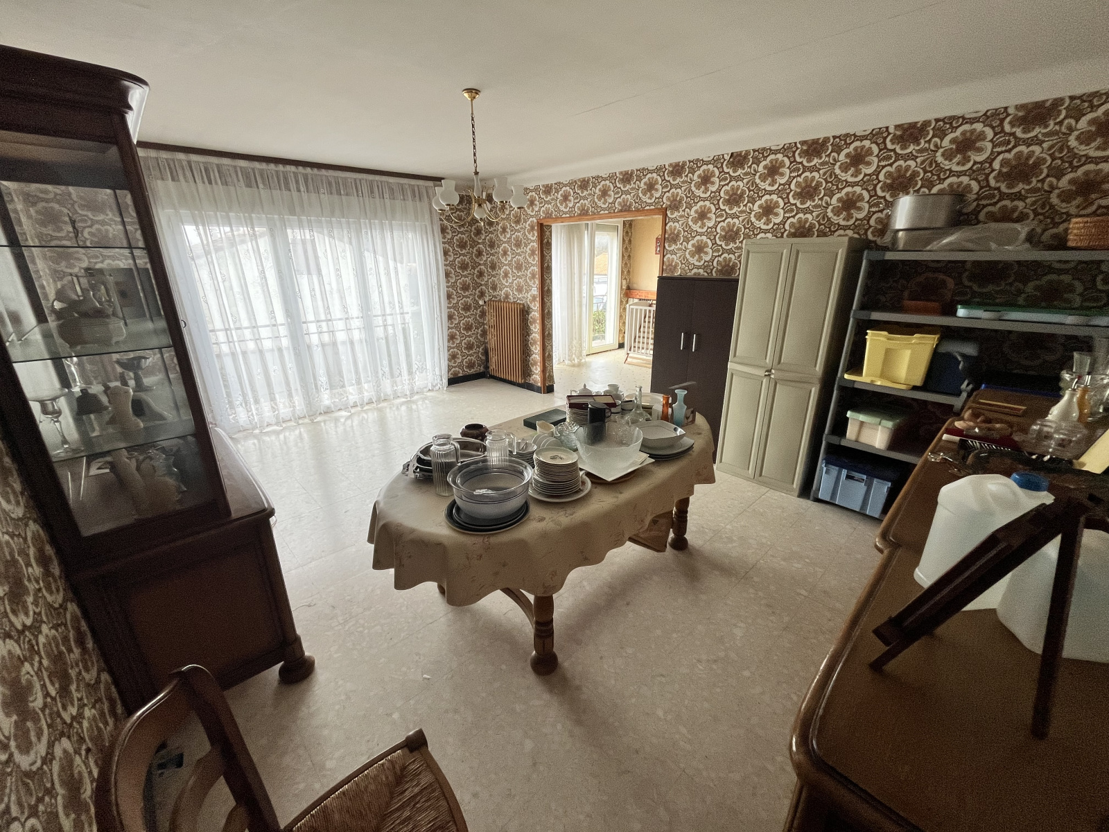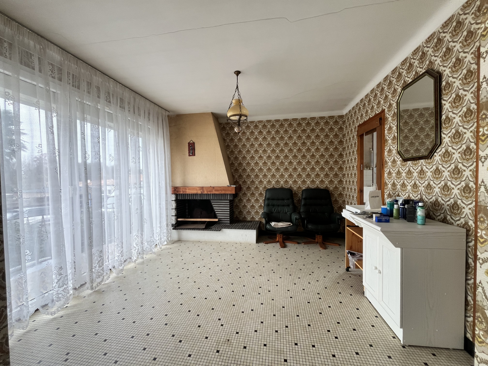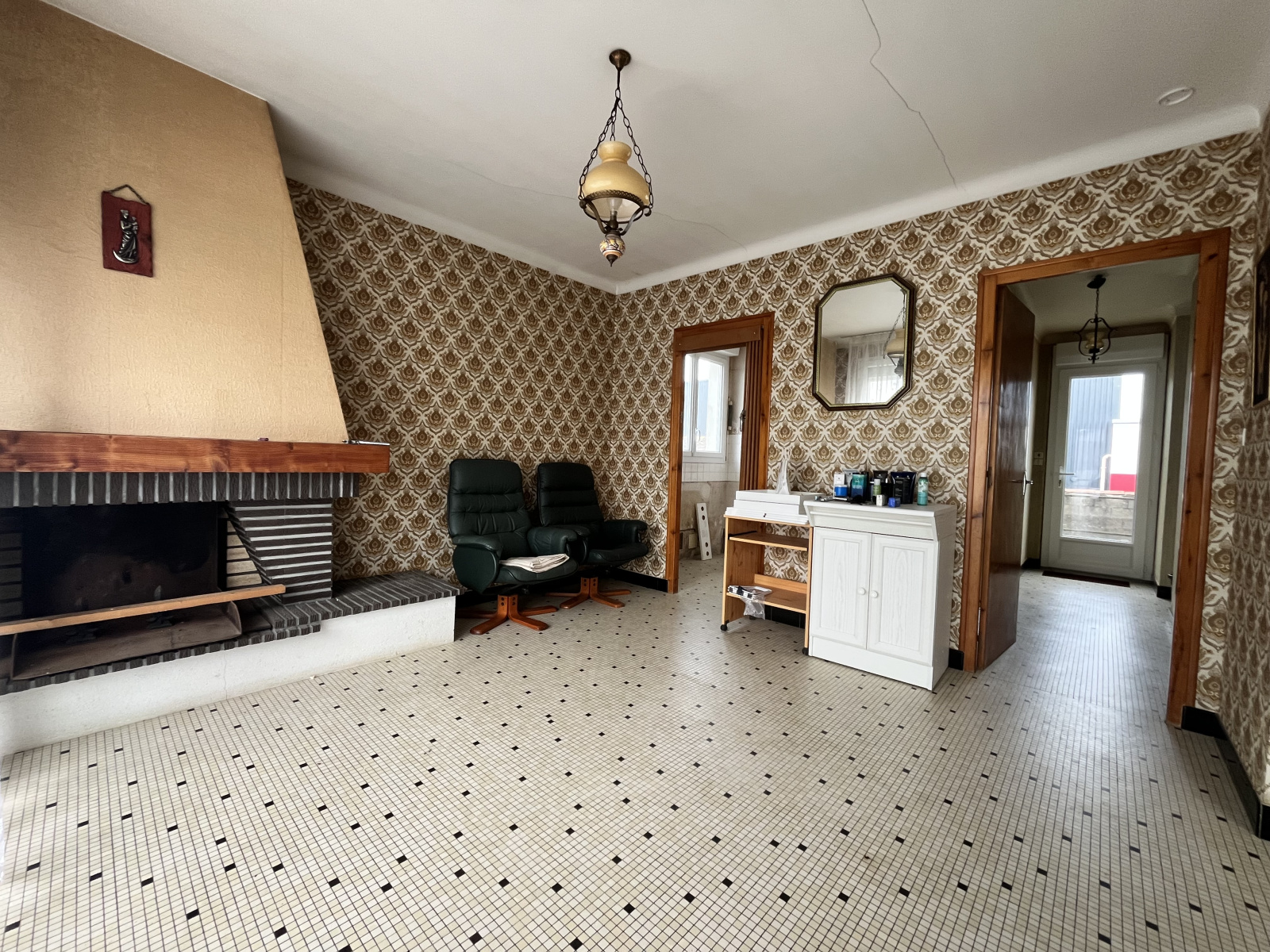 - salle à manger + espace cuisine (à créer) avec cheminée ouverte soit + de 40 m²