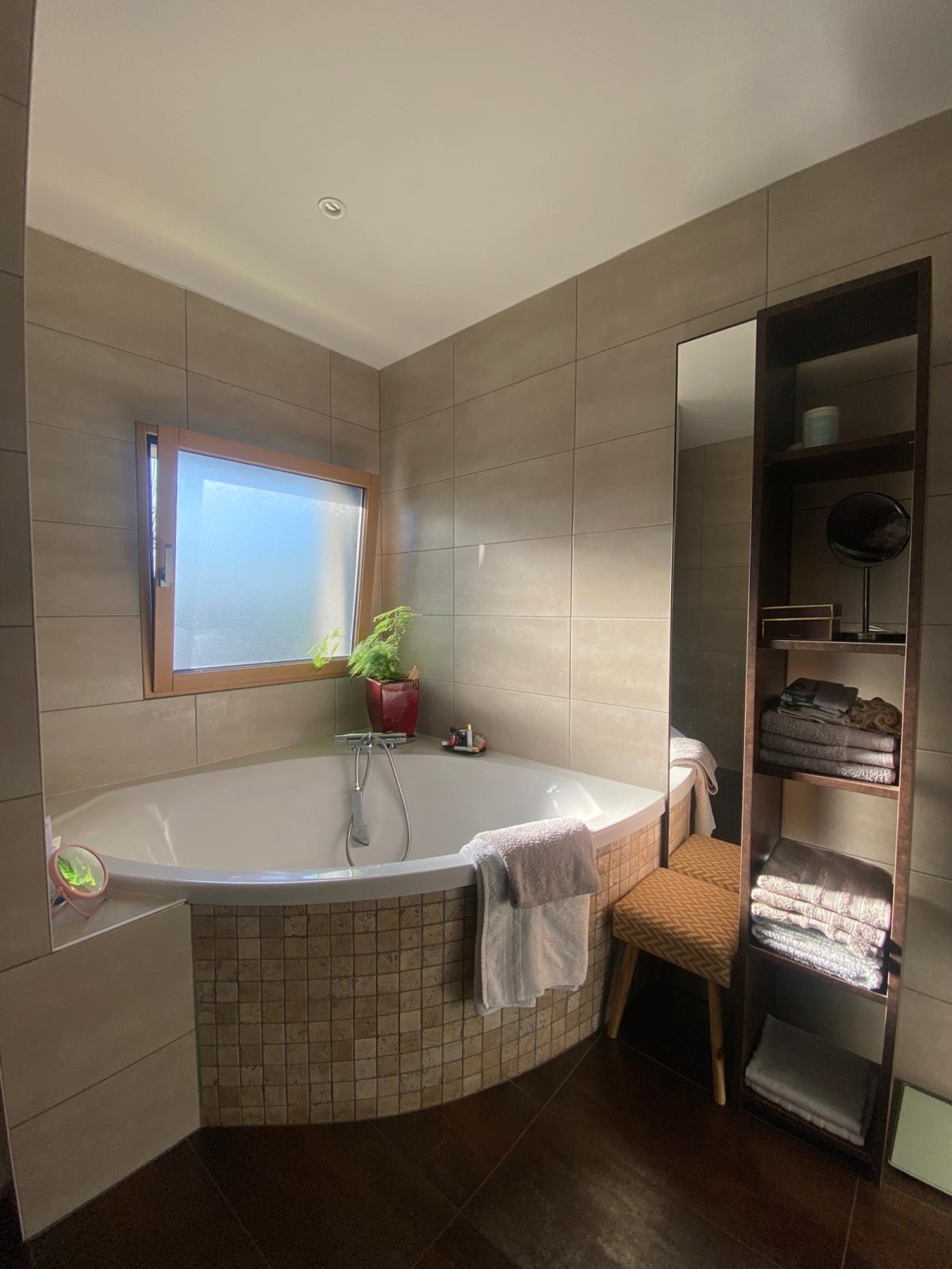 A l'étage espace détente, 4 chambres dont une avec son dressing, bureau, salle de bain avec douche italienne, wc séparé.