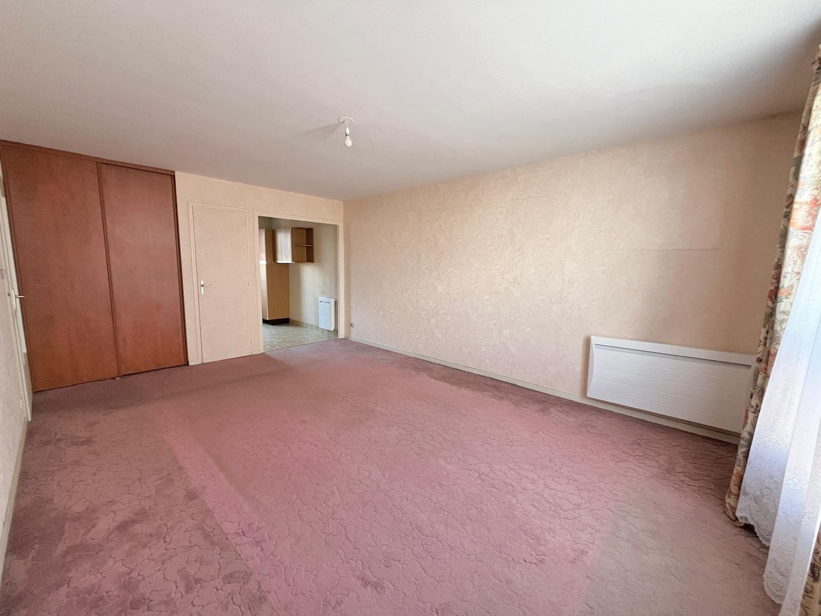 Entrée, pièce de vie avec cuisine aménagée et équipée, une chambre avec placard, une salle de bains et wc indépendant.