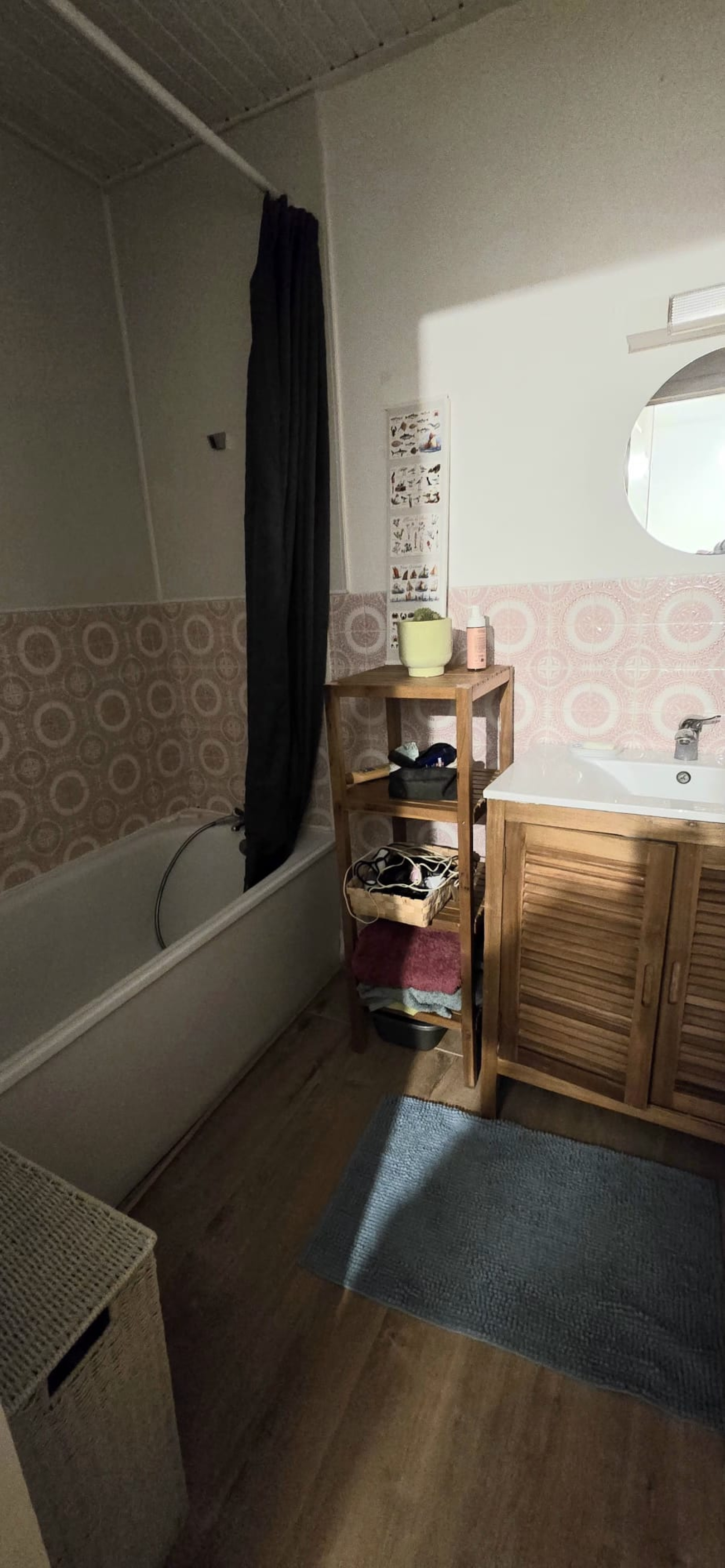 Il se compose d’une entree, une piece de vie cosy, une chambre, un bureau, une salle de bain, wc et veranda revisitee en cuisine.